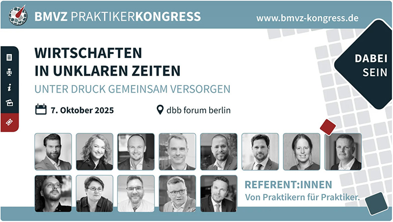 Was bedeutet das konkret? Worauf müssen sich MVZ und BAG sowie die Akteure an der Schnittstelle ambulant-stationär in den nächsten Jahren einstellen? Welche Rolle spielt die Selbstverwaltung? Und in welchem Tempo wird die neue Regierung vorgehen? Beim 19. BMVZ PRAKTIKERKONGRESS geben wir auf diese Fragen aktuelle Antworten sowie strategische Einblicke in den Berliner Politikbetrieb. Außerdem befassen wir uns mit den großen Umbrüchen dieser Zeit: sprich Digitalisierung und künstlicher Intelligenz – und deren Folgen und Nutzen für den Praxisalltag.