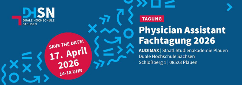 Informieren Sie sich über aktuelle Entwicklungen des Berufsbildes „Physician Assistant“ und diskutieren Sie mit. Besuchen Sie die Fachtagung am 17. April 2026 an der Dualen Hochschule Sachsen in Plauen und erleben Sie einen Nachmittag voller interessanter Diskussionen und Networking-Möglichkeiten. Verpassen Sie nicht diese Gelegenheit, sich mit anderen Physician Assistants, Ärztinnen und Ärzten und gesundheitspolitischen Akteuren auszutauschen und Ihr Wissen zu erweitern.
